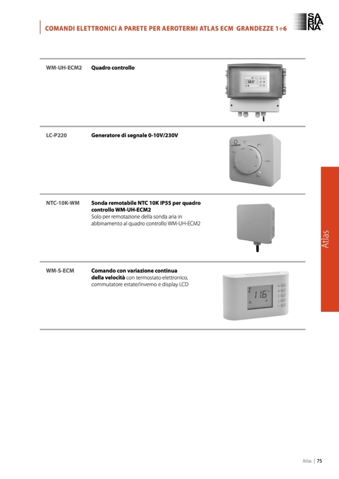COMANDI ELETTRONICI A PARETE PER AEROTERMI ATLAS ECM GRANDEZZE 1÷6