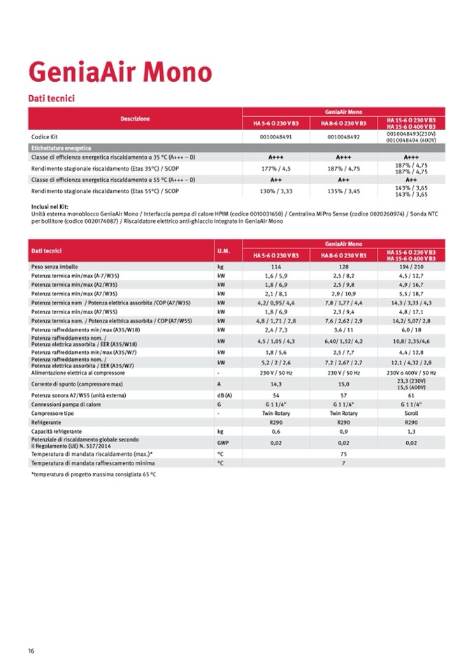 Unità esterna monoblocco GeniaAir Mono / Interfaccia pompa di calore HPIM (codice 0010031650) / Centralina MiPro Sense (codice 0020260974) / Sonda NTC