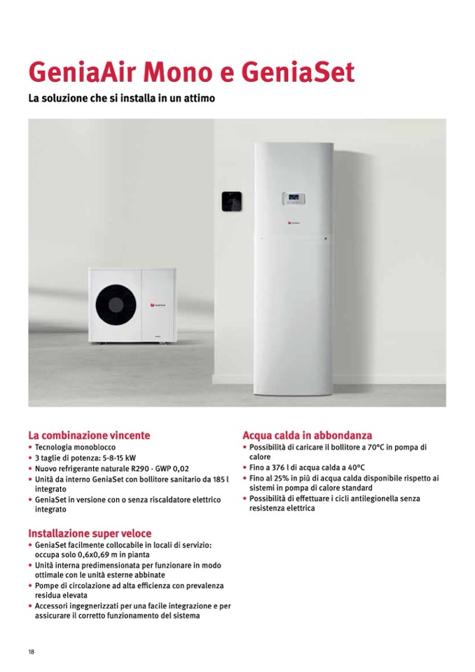• Unità da interno GeniaSet con bollitore sanitario da 185 l