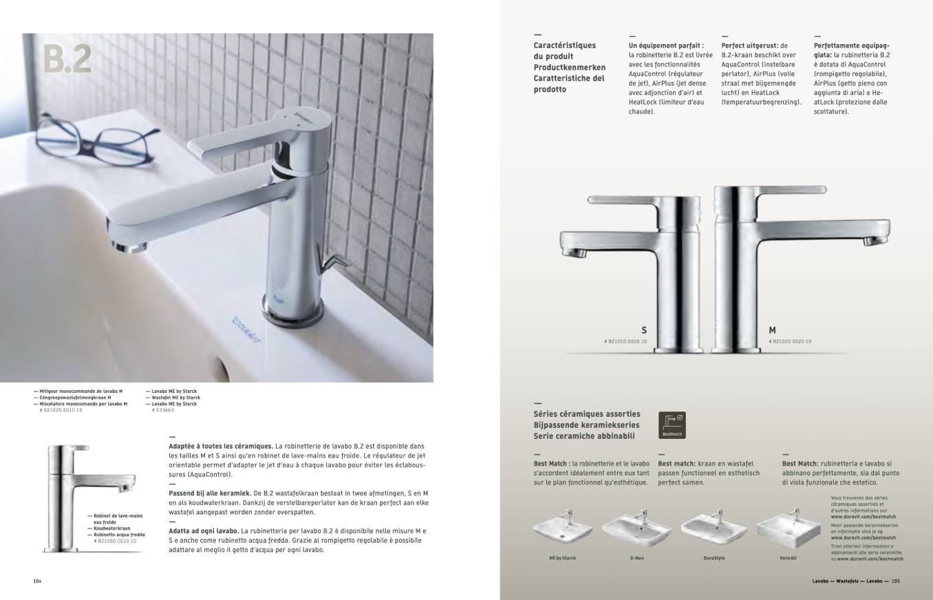 Adaptée à toutes les céramiques. La robinetterie de lavabo B.2 est disponible dans