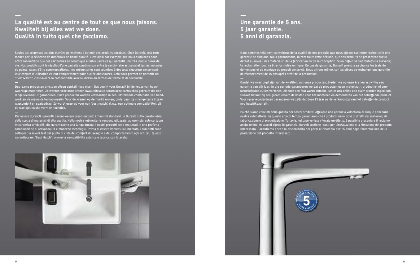 anche online. In caso di difetto in garanzia, Duravit sostiene i costi per l’installazione e la rimozione del prodotto