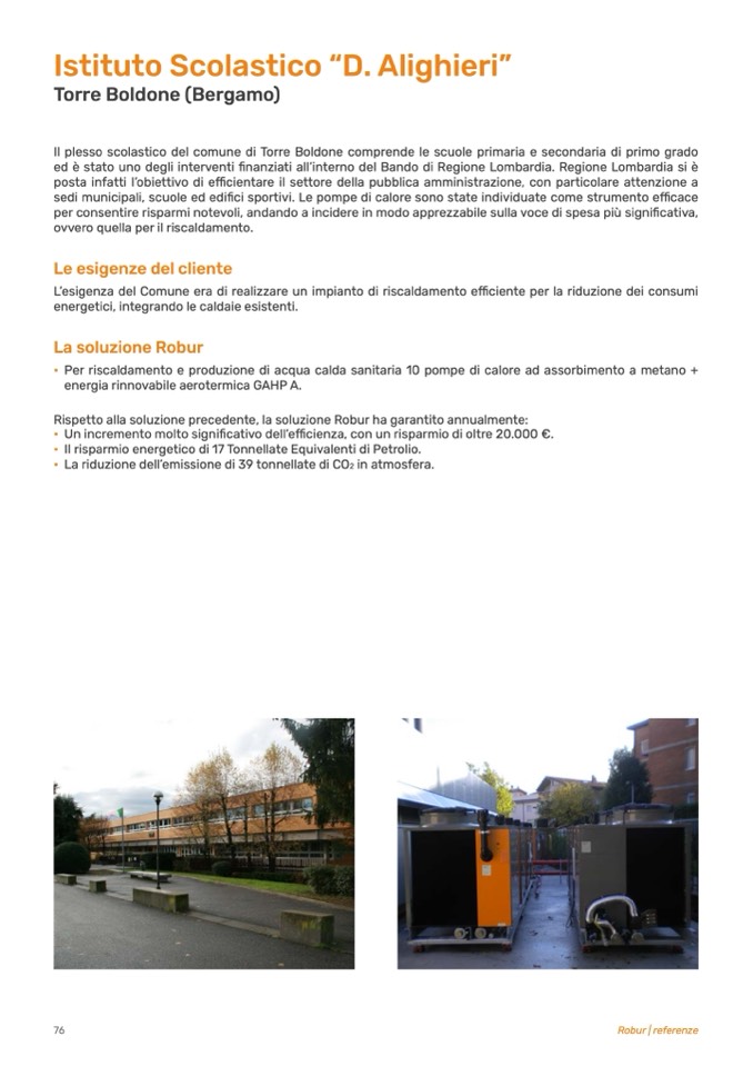 • Per riscaldamento e produzione di acqua calda sanitaria 10 pompe di calore ad assorbimento a metano +