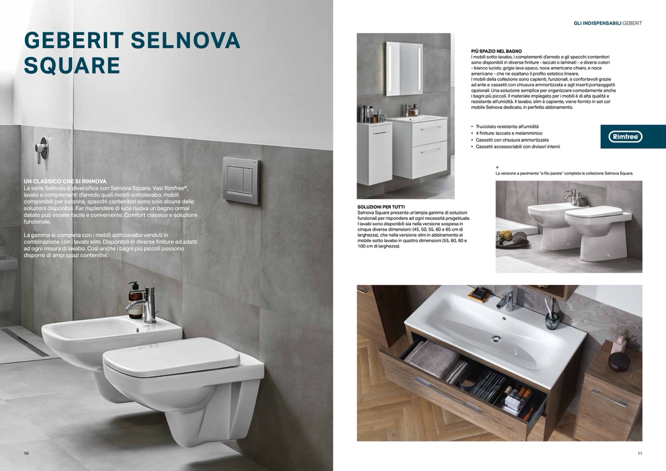 La versione a pavimento “a filo parete” completa la collezione Selnova Square.