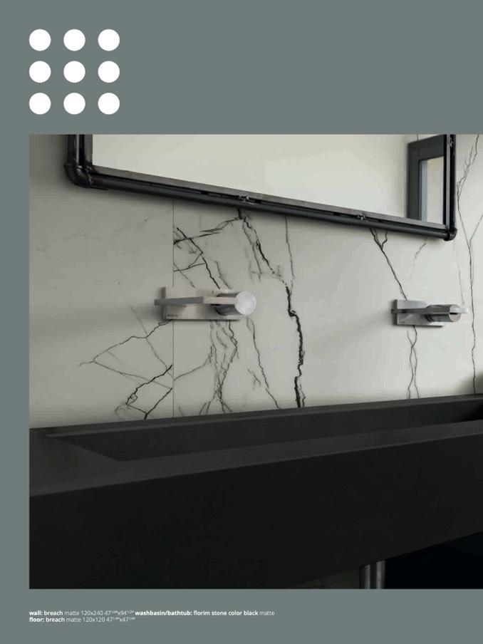 wall: breach matte 120x240 471/4”x941/2” washbasin/bathtub: