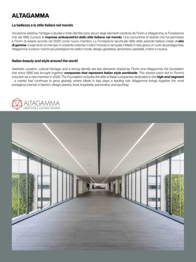 induction as a new member in 2022. The Foundation includes the elite of Italian companies dedicated to the high-end segmen