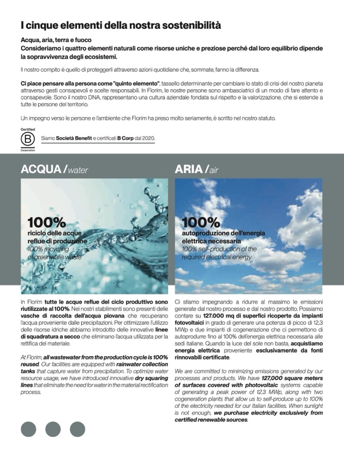 attraverso gesti consapevoli e scelte responsabili. In Florim, le nostre persone sono ambasciatrici di un modo di fare attento e