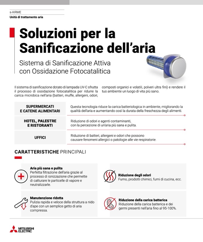 Il sistema di sanificazione dotato di lampada UV-C sfrutta composti organici e volatili, polveri ultra fini) e rendere il