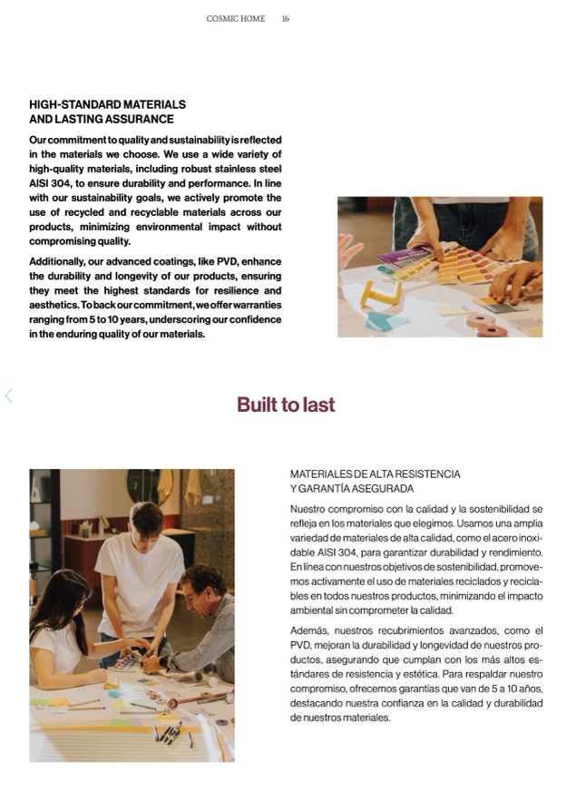 refleja en los materiales que elegimos. Usamos una amplia