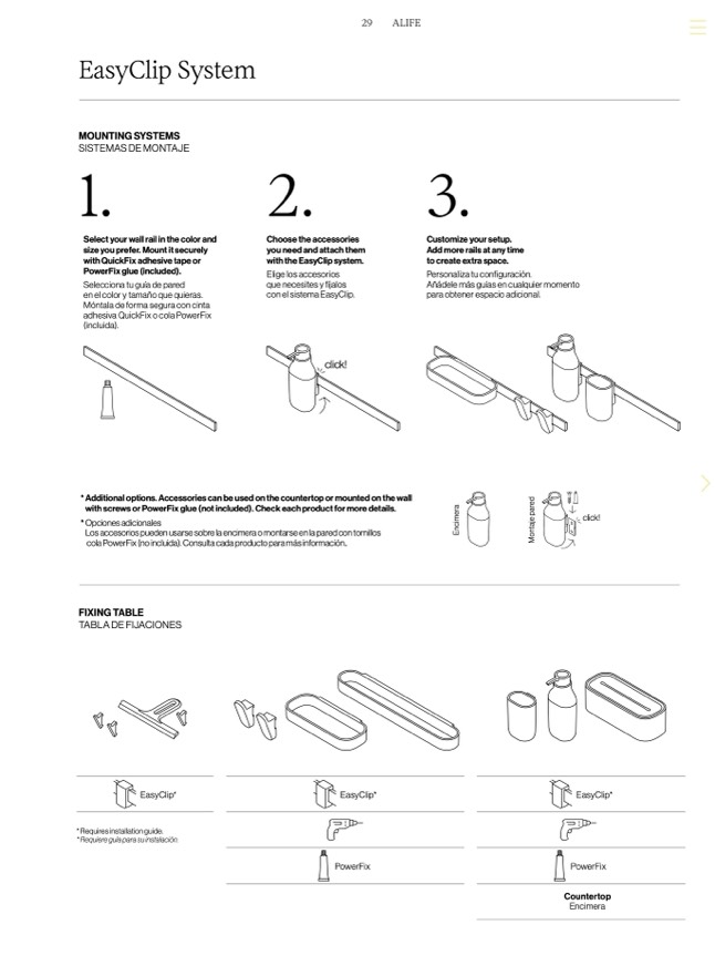 with screws or PowerFix glue (not included). Check each product for more details.