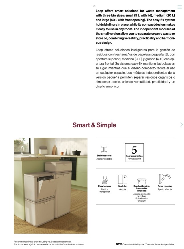 ertura frontal. Su sistema easy-fix mantiene las bolsas en
