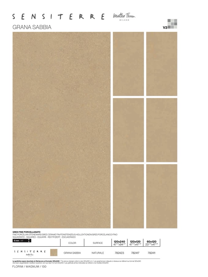 Le grafiche sopra riportate si riferiscono al formato 120x240 / The above designs refer to size 120x240 cm / Les graphismes indiqués ci-dessus se réfèrent au format 120x24