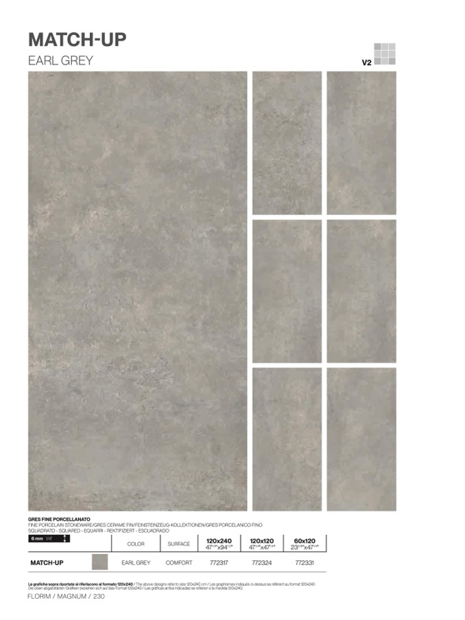 Le grafiche sopra riportate si riferiscono al formato 120x240 / The above designs refer to size 120x240 cm / Les graphismes indiqués ci-dessus se réfèrent au format 120x24