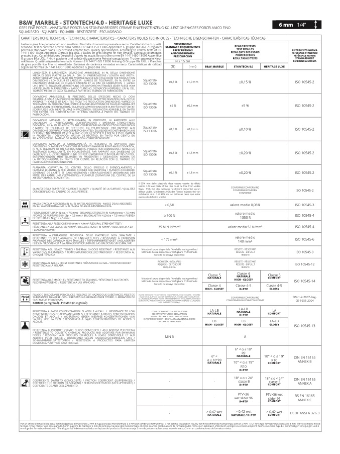 CARATTERISTICHE TECNICHE - TECHNICAL CHARACTERISTICS - CARACTERISTIQUES TECHNIQUES - TECHNISCHE EIGENSCHAFTEN - CARACTERÍSTICAS TÉCNICA