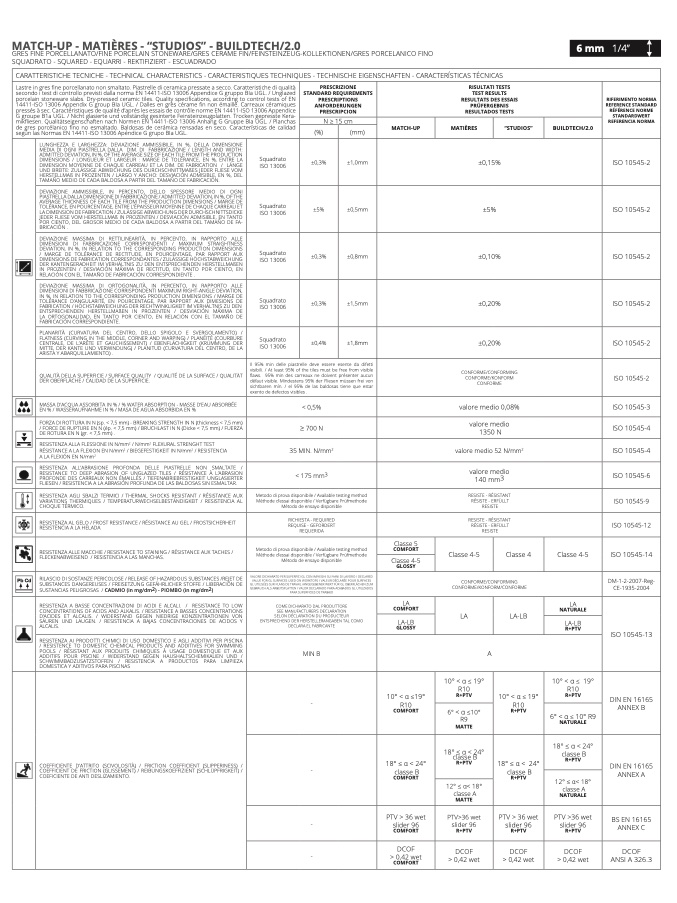 CARATTERISTICHE TECNICHE - TECHNICAL CHARACTERISTICS - CARACTERISTIQUES TECHNIQUES - TECHNISCHE EIGENSCHAFTEN - CARACTERÍSTICAS TÉCNICAS