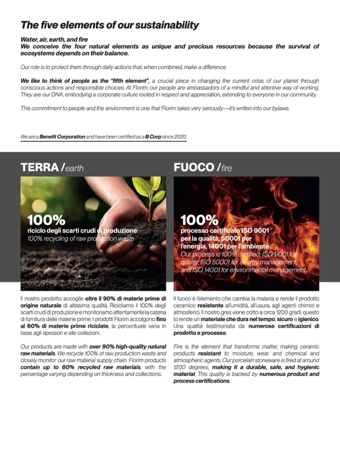 This commitment to people and the environment is one that Florim takes very seriously—it’s written into our bylaws