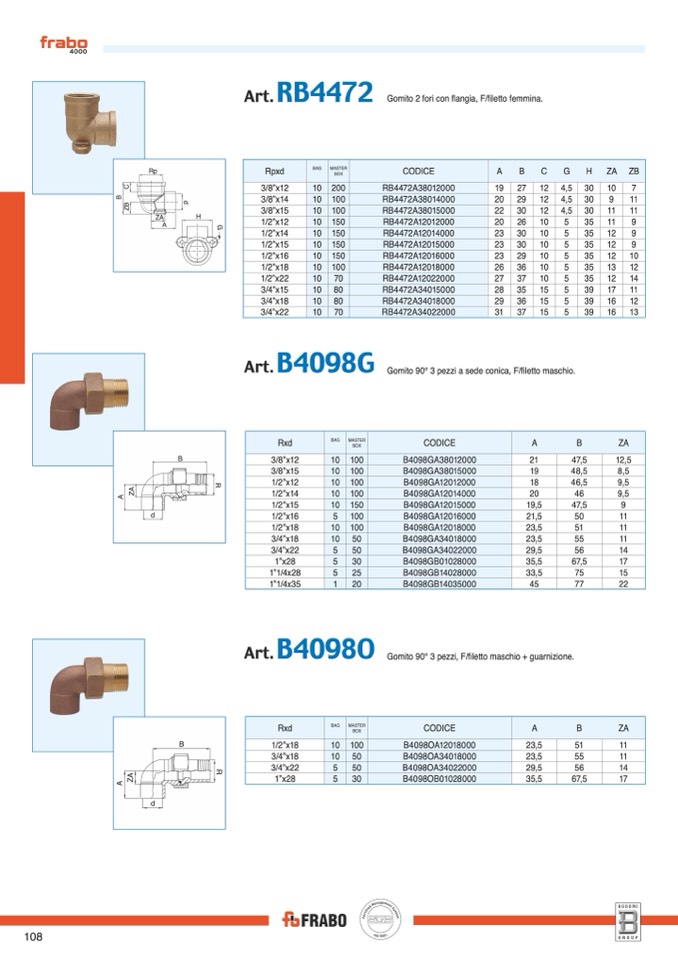 Gomito 90° 3 pezzi, F/filetto maschio + guarnizione.