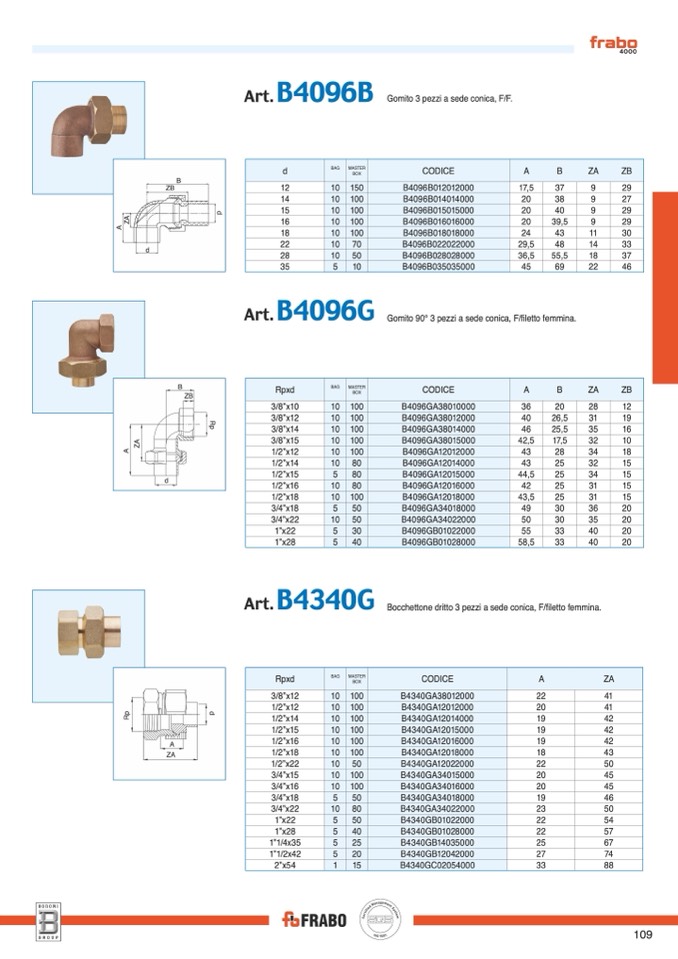 Gomito 90° 3 pezzi a sede conica, F/filetto femmina.