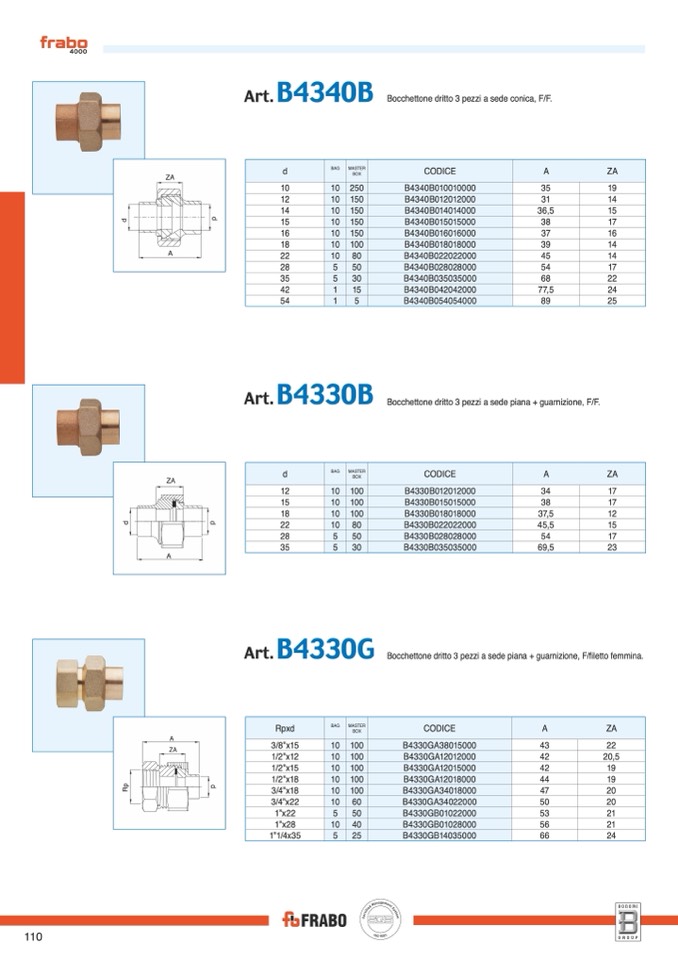 Bocchettone dritto 3 pezzi a sede conica, F/F.