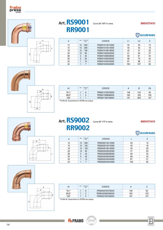 * Profilo M. Guarnizione in EPDM uso acqua.