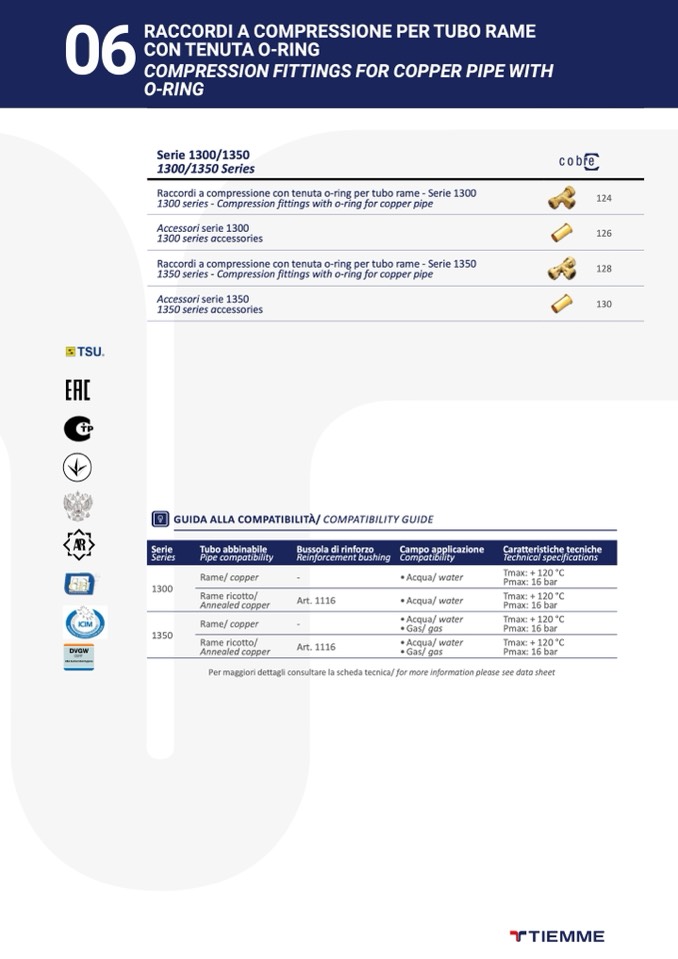 Raccordi a compressione con tenuta o-ring per tubo rame - Serie 1300