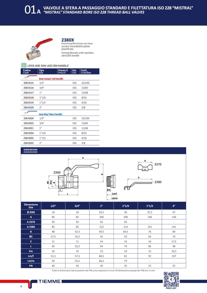 Tutte le dimensioni (ad eccezione del PN) sono espresse in mm/ All dimensions (except for PN) are in mm