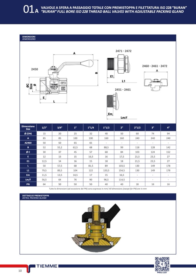 Tutte le dimensioni (ad eccezione del PN) sono espresse in mm/ All dimensions (except for PN) are in mm