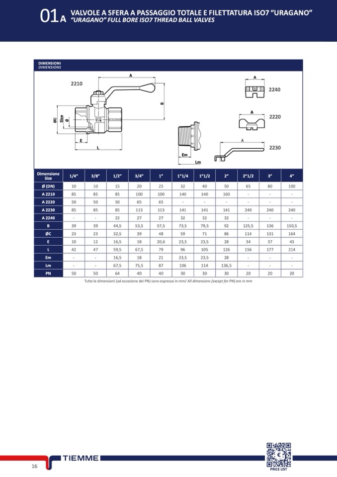 Tutte le dimensioni (ad eccezione del PN) sono espresse in mm/ All dimensions (except for PN) are in mm