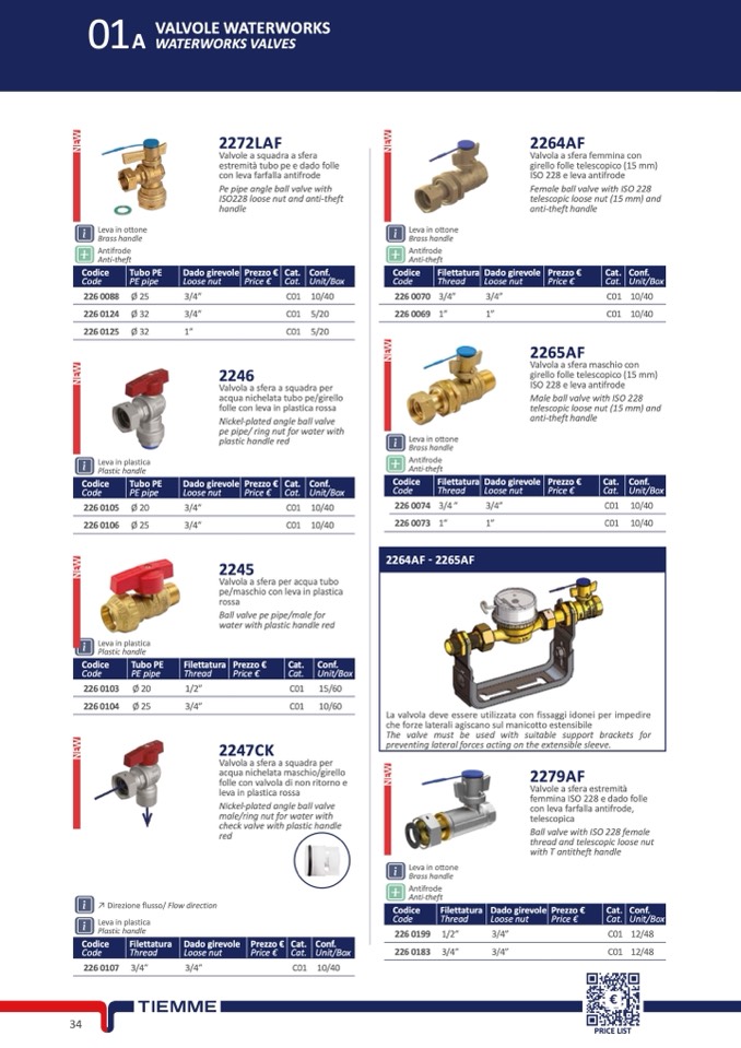 La valvola deve essere utilizzata con fissaggi idonei per impedire