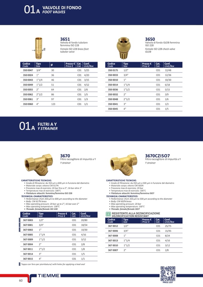 • Grado di filtrazione: da 350 μm a 600 μm in funzione del diametro