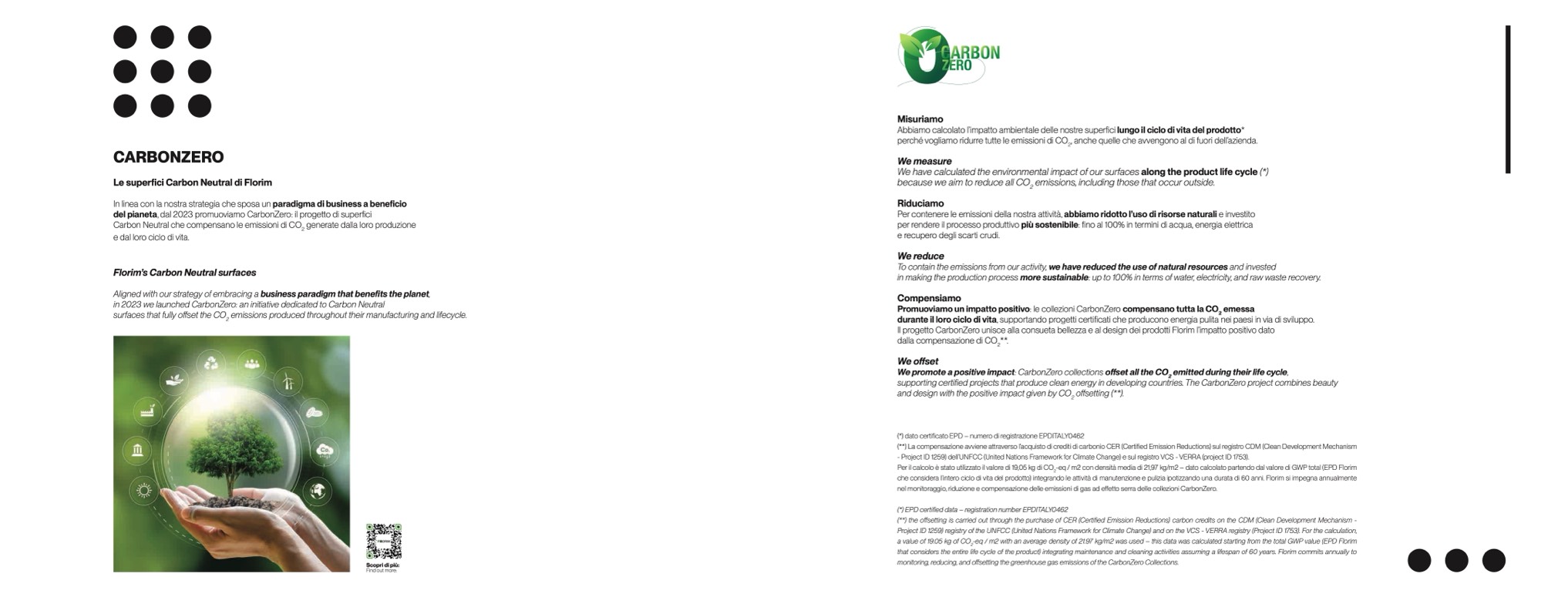 Il progetto CarbonZero unisce alla consueta bellezza e al design dei prodotti Florim l’impatto positivo dato