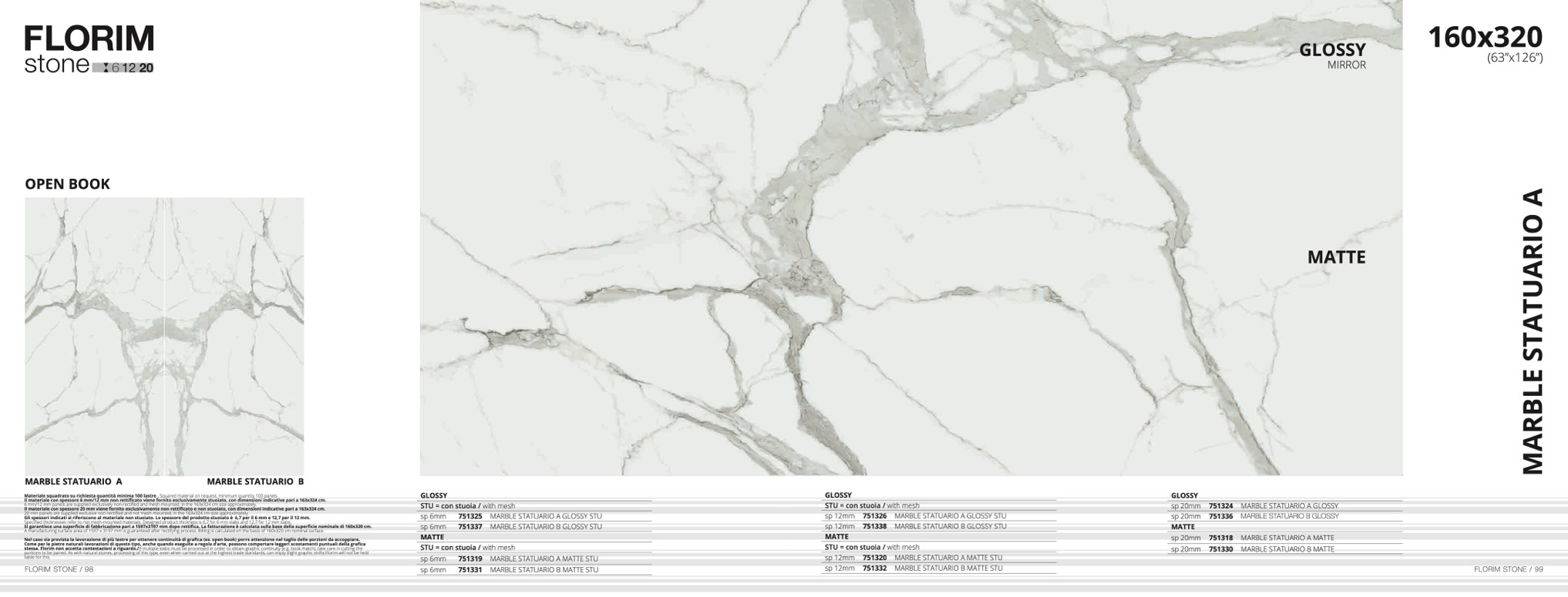 sp 20mm 751318 MARBLE STATUARIO A MATT