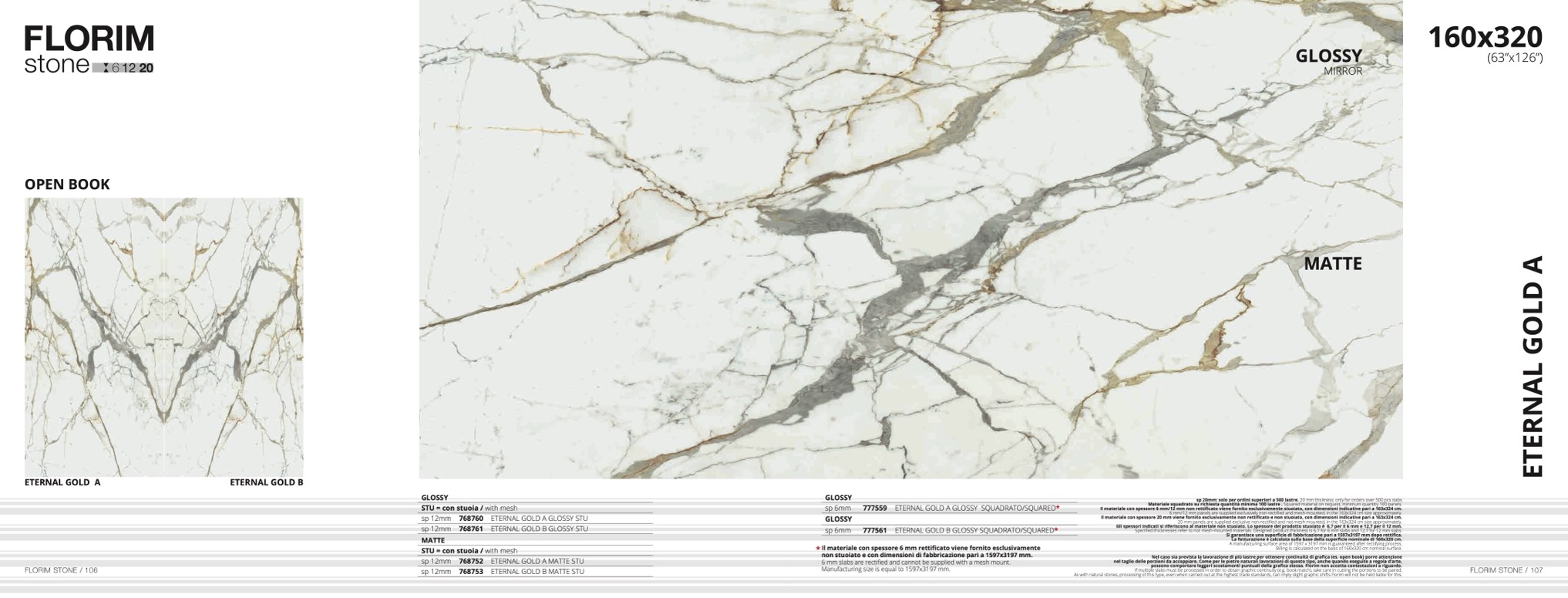 sp 20mm: solo per ordini superiori a 500 lastre. 20 mm thickness: only for orders over 500 pcs slabs