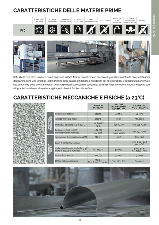 nell’estrusione della gronda e nello stampaggio degli accessori ha consentito alla First Plast di mettere a punto materiali con