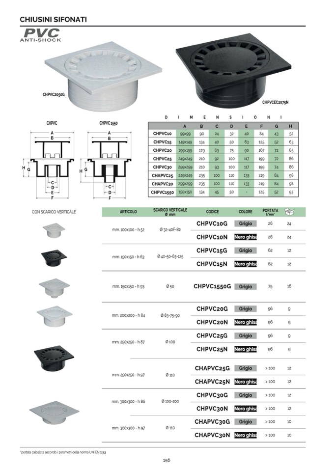 * portata calcolata secondo i parametri della norma UNI EN 1253