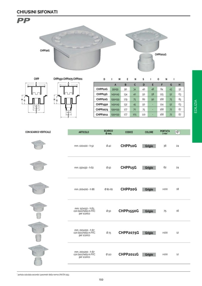 * portata calcolata secondo i parametri della norma UNI EN 1253