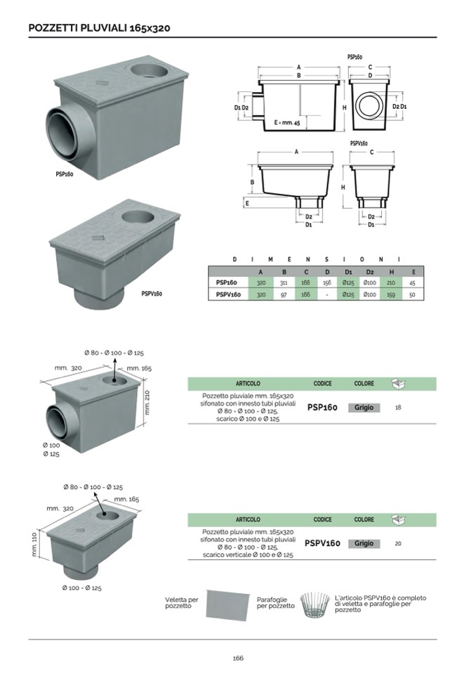 Pozzetto pluviale mm. 165x320