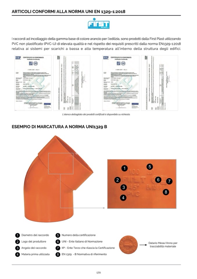I raccordi ad incollaggio della gamma base di colore arancio per l’edilizia, sono prodotti dalla First Plast utilizzando