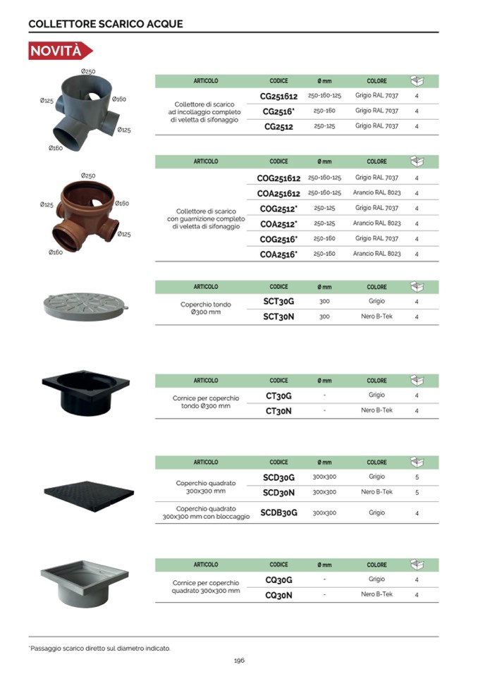 *Passaggio scarico diretto sul diametro indicato.