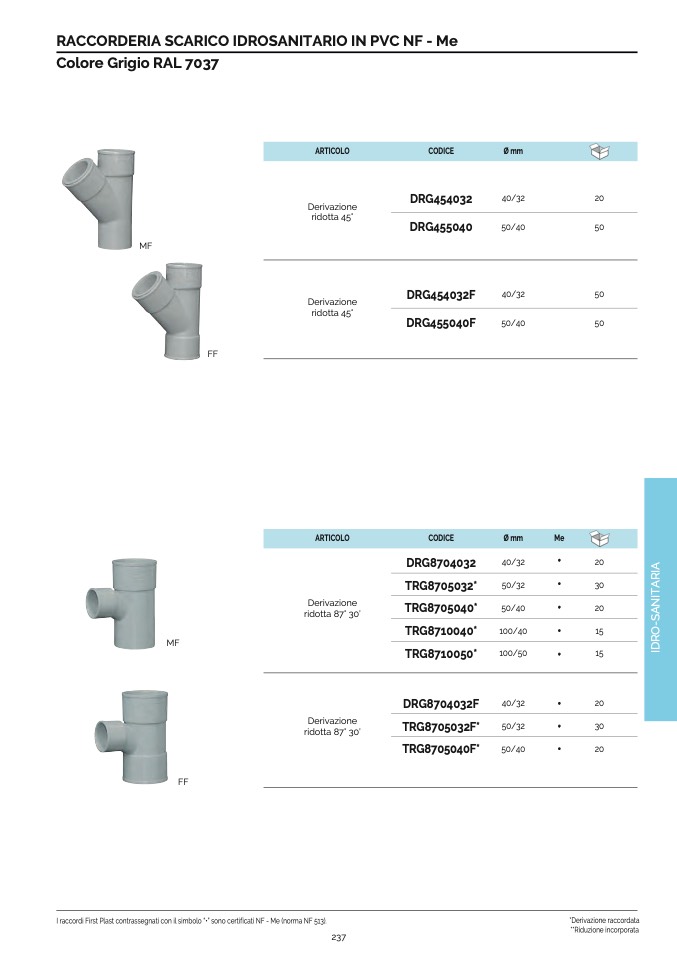 I raccordi First Plast contrassegnati con il simbolo “•” sono certificati NF - Me (norma NF 513).