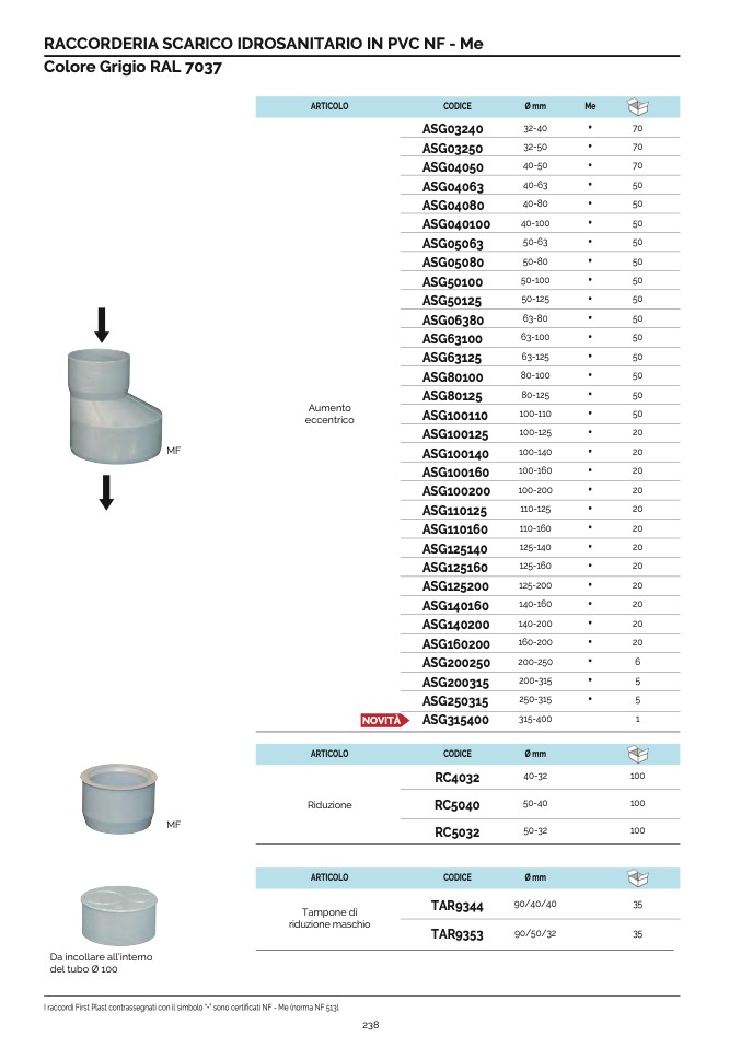 I raccordi First Plast contrassegnati con il simbolo “•” sono certificati NF - Me (norma NF 513).
