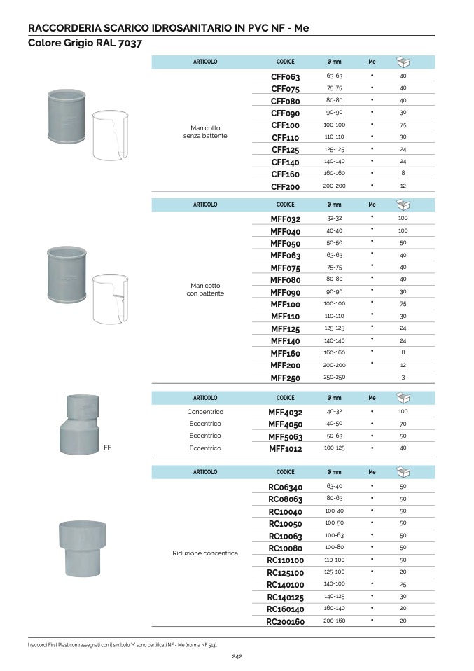 I raccordi First Plast contrassegnati con il simbolo “•” sono certificati NF - Me (norma NF 513).