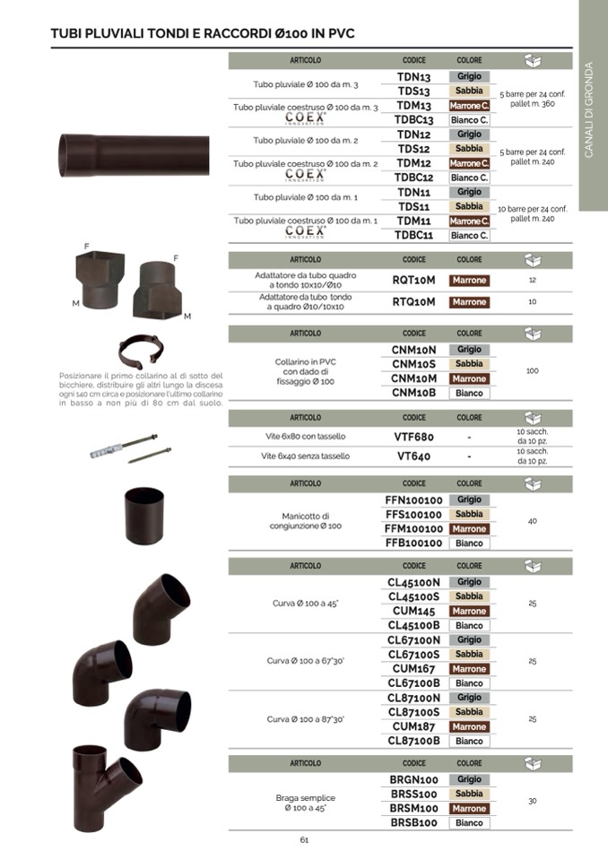 TUBI PLUVIALI TONDI E RACCORDI Ø100 IN PVC