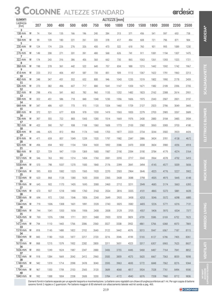Elementi forniti in batterie separate per un agevole trasporto e movimentazione. Le batterie sono nipplabili con chiave di lunghezza inferiore ad 1 mt. Per ogni coppia di batterie