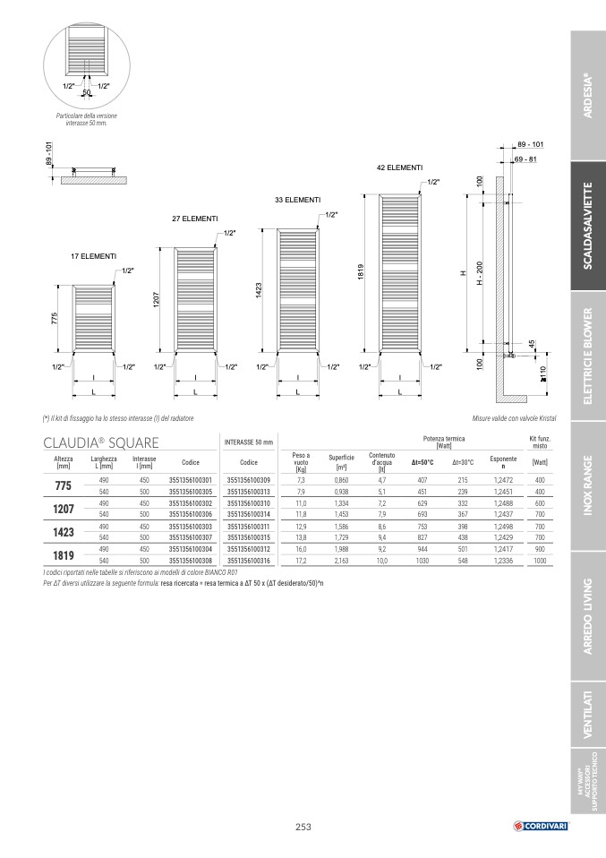 Per ΔT diversi utilizzare la seguente formula: resa ricercata = resa termica a ΔT 50 x (ΔT desiderato/50)^n