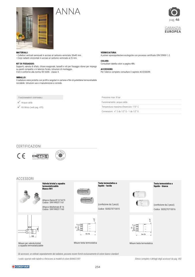 Gli accessori, se ordinati separatamente dal radiatore, possono essere forniti esclusivamente di colore bianco standard
