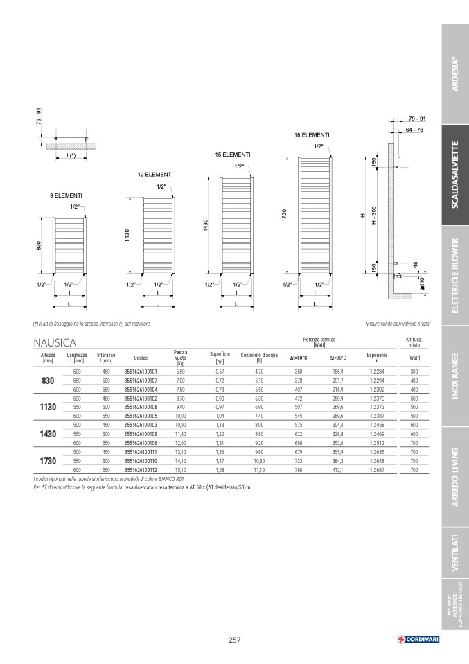 Per ΔT diversi utilizzare la seguente formula: resa ricercata = resa termica a ΔT 50 x (ΔT desiderato/50)^n