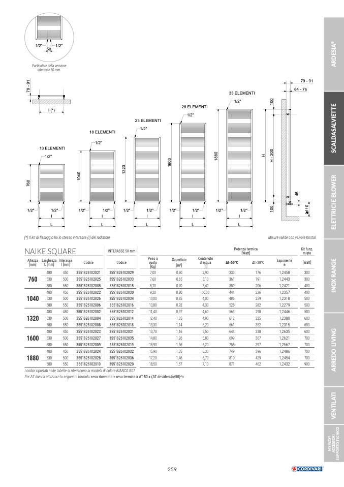 Per ΔT diversi utilizzare la seguente formula: resa ricercata = resa termica a ΔT 50 x (ΔT desiderato/50)^n