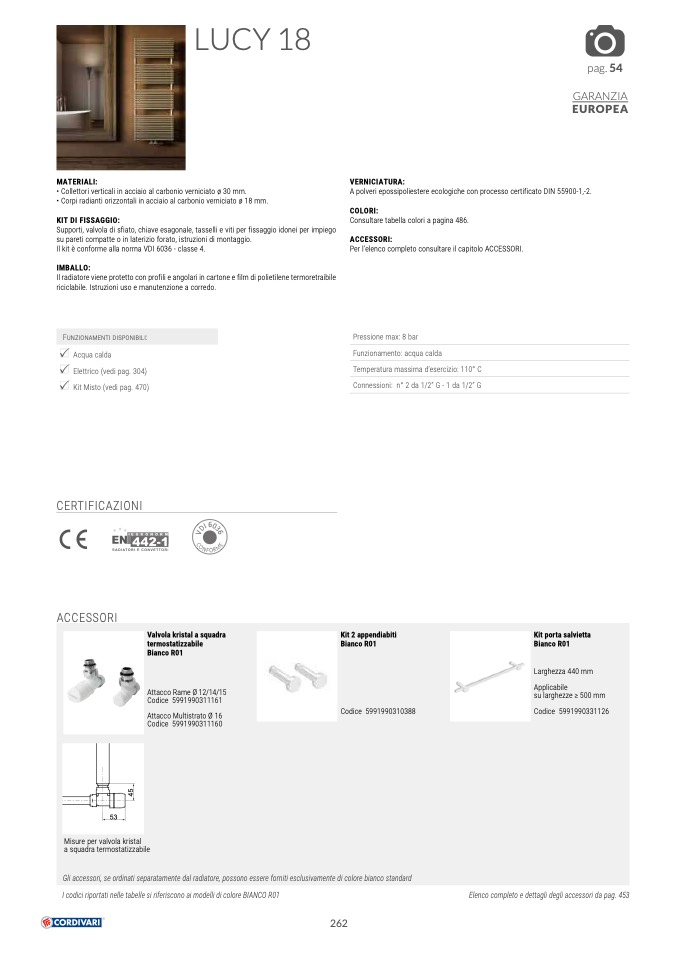 Gli accessori, se ordinati separatamente dal radiatore, possono essere forniti esclusivamente di colore bianco standard