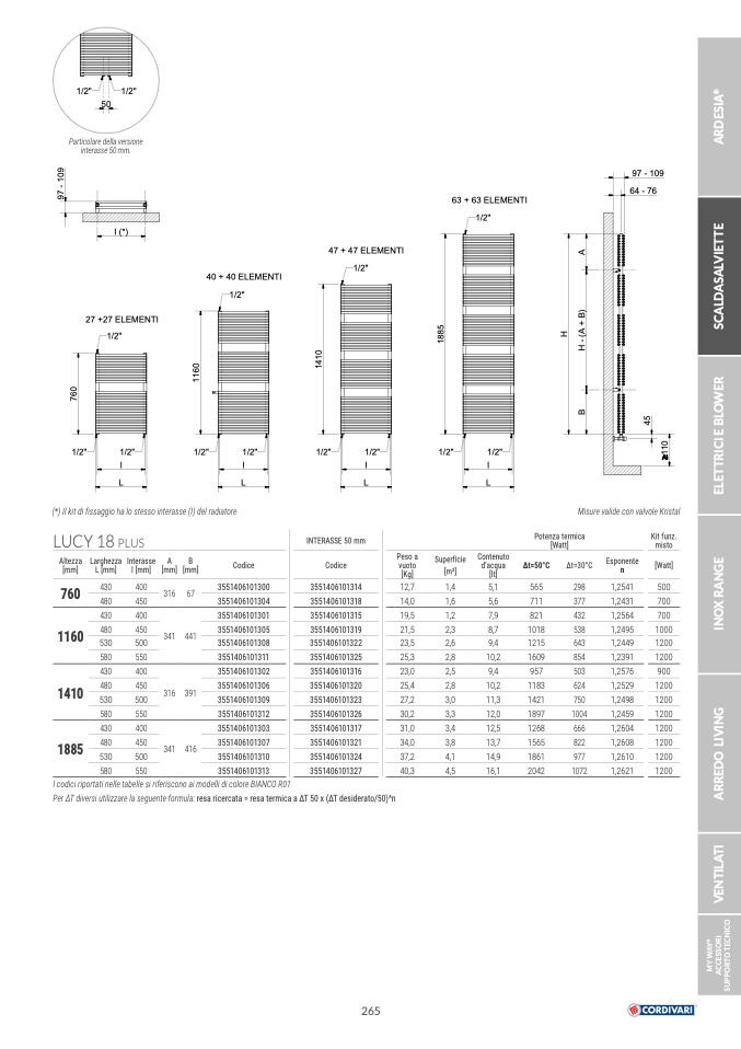 (*) Il kit di fissaggio ha lo stesso interasse (I) del radiatore