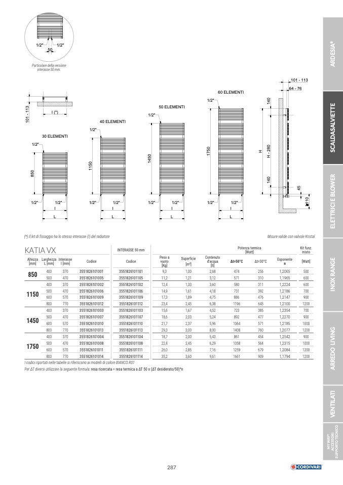 Per ΔT diversi utilizzare la seguente formula: resa ricercata = resa termica a ΔT 50 x (ΔT desiderato/50)^n